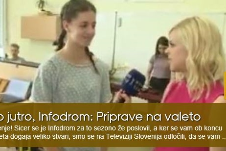 Preberi večV sredo, 14. junija 2017, nas je na šoli obiskala ekipa Infodroma. Nekaj naših devetošolcev je predstavilo, kako se pripravljajo na valeto.
